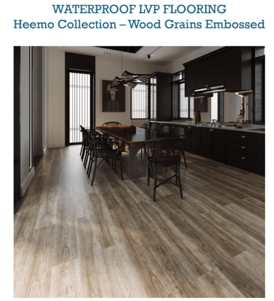 The Heemo Collection Waterproof LVP Flooring combines the natural beauty of real wood with the durability of modern materials. Featuring embossed wood grain textures, this flooring delivers an authentic look and feel while offering 100% waterproof performance—perfect for busy households and high-traffic areas.